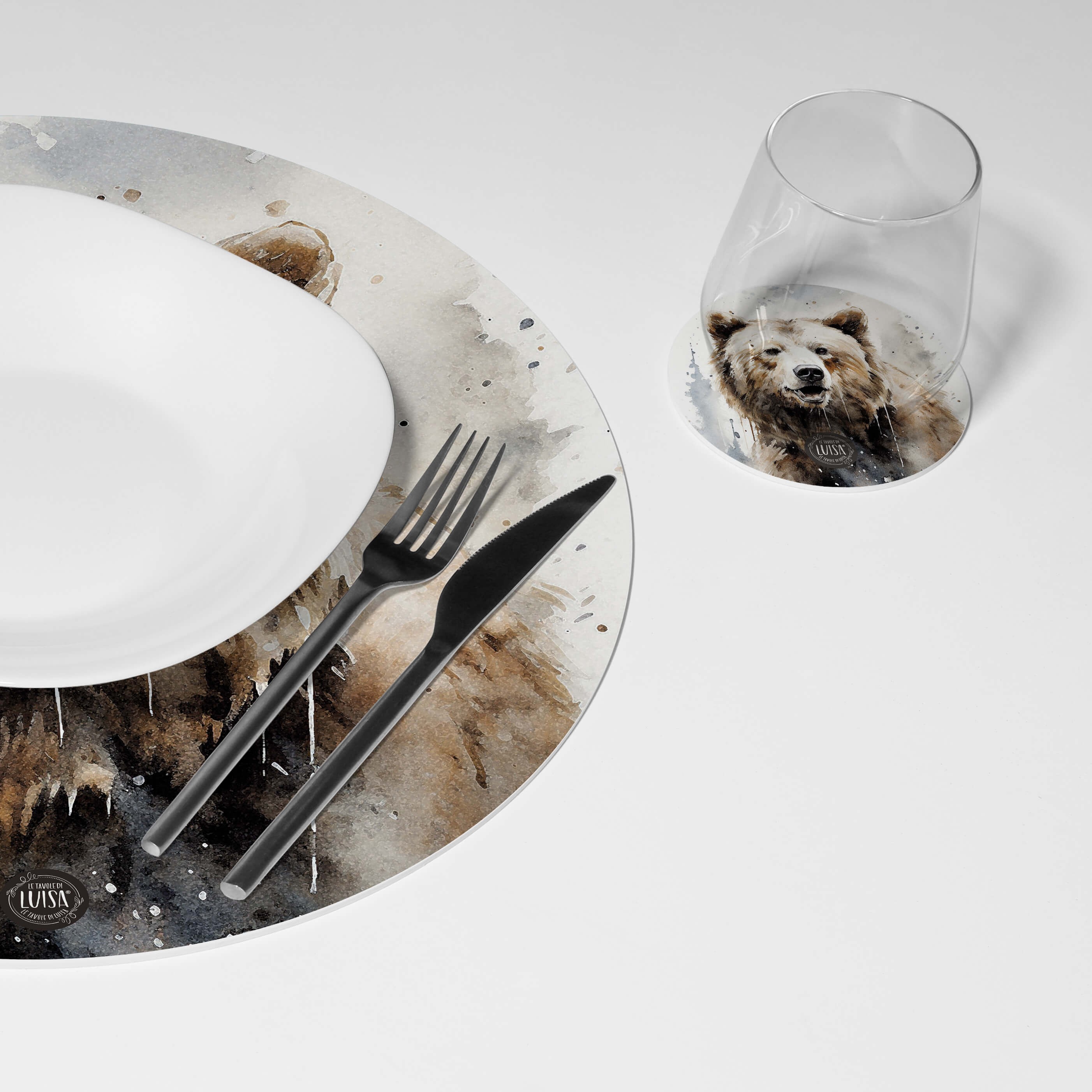 Kit 6 sottopiatti e 6 sottobicchieri "Orso Bruno"