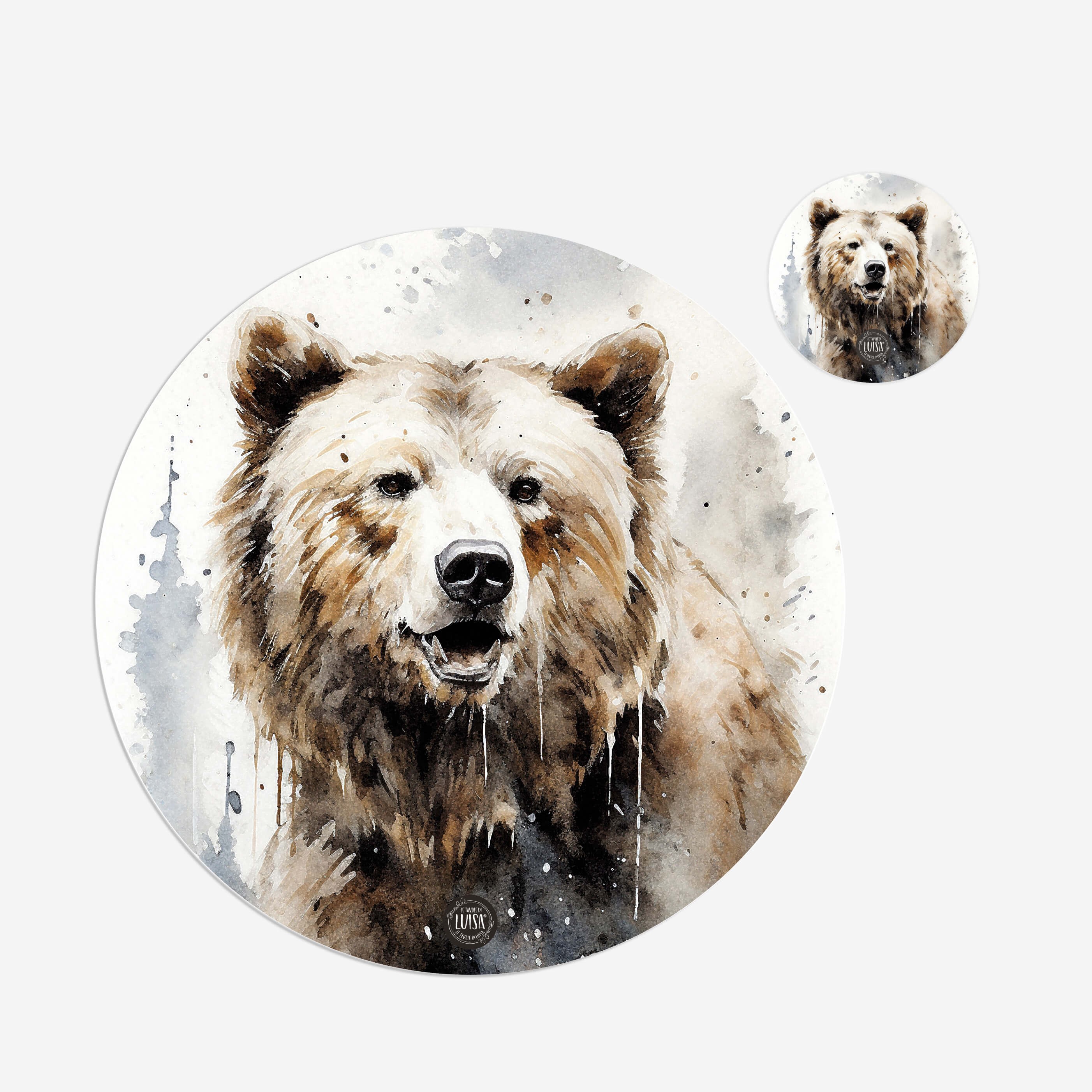 Immergiti nell'incanto della natura con il kit di 6 sottopiatti e 6 sottobicchieri "Orso Bruno". Ogni sottopiatto è un'opera d'arte, con un primo piano affascinante e commovente di un maestoso orso bruno ad acquerello su uno sfondo bianco.
