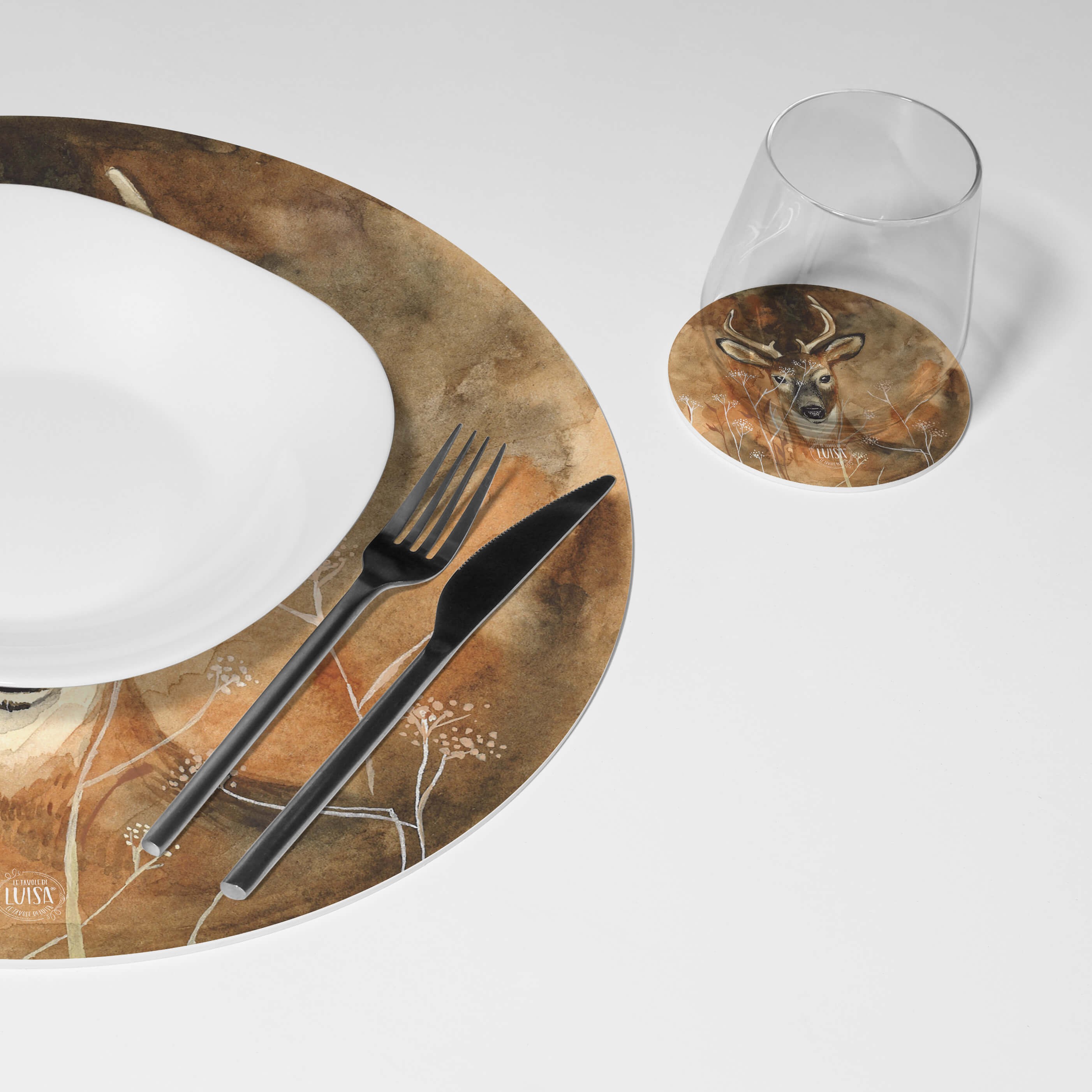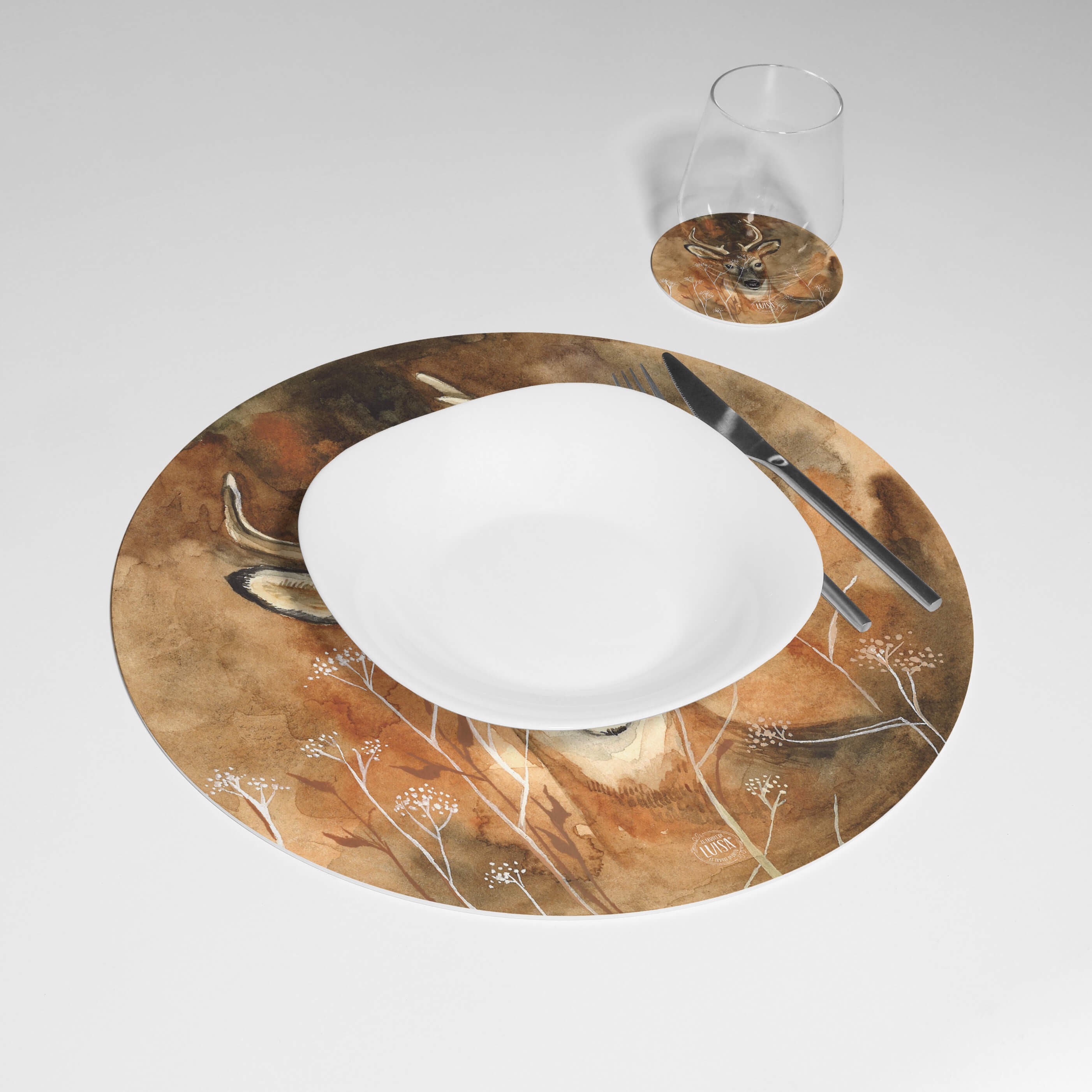 Kit 6 sottopiatti e 6 sottobicchieri “Ritratto di Cervo”