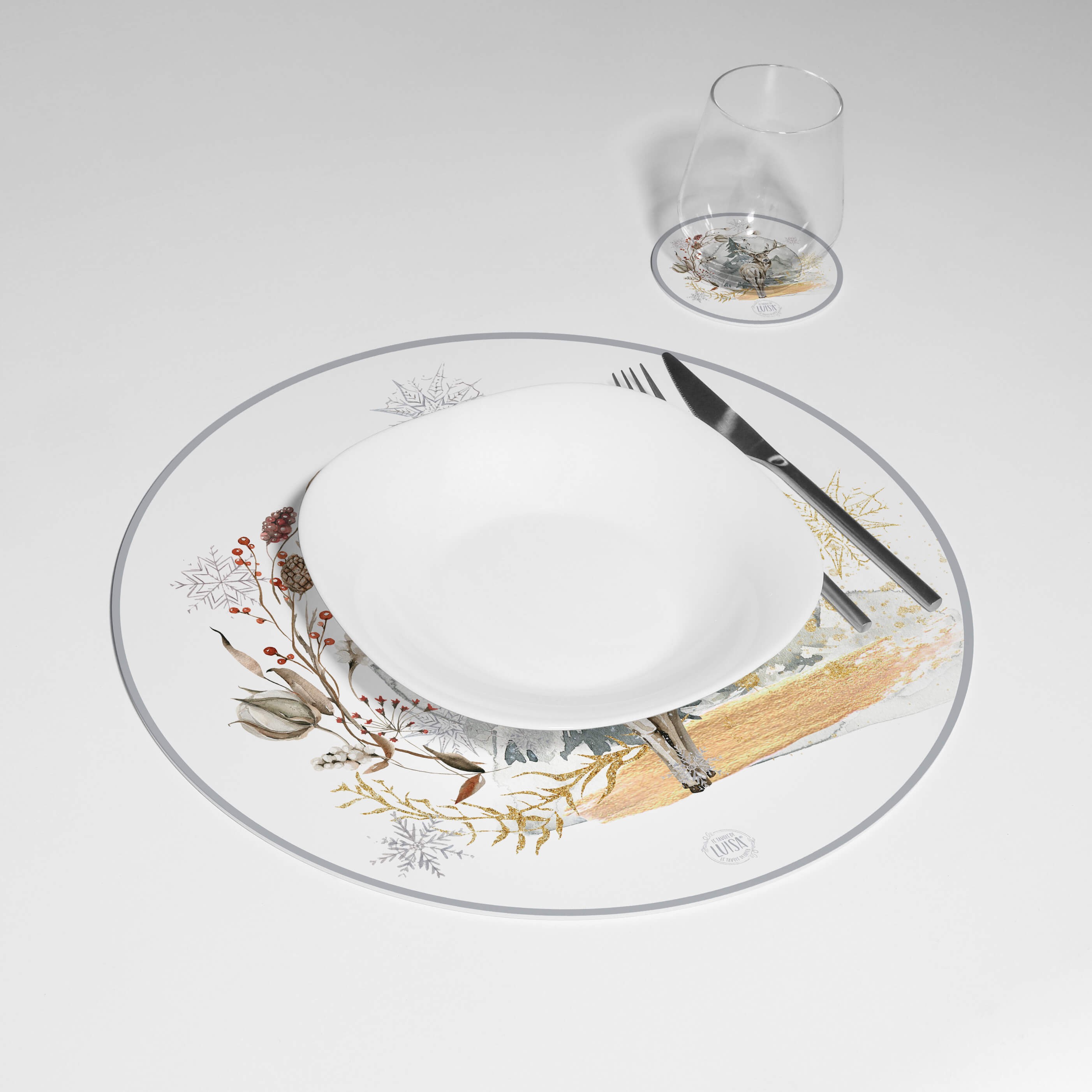 Lasciati avvolgere dall'incanto invernale con i sottopiatti e i sottobicchieri che trasformano ogni pasto in un'esperienza straordinaria, catturando la bellezza e la serenità dell'inverno in ogni dettaglio.