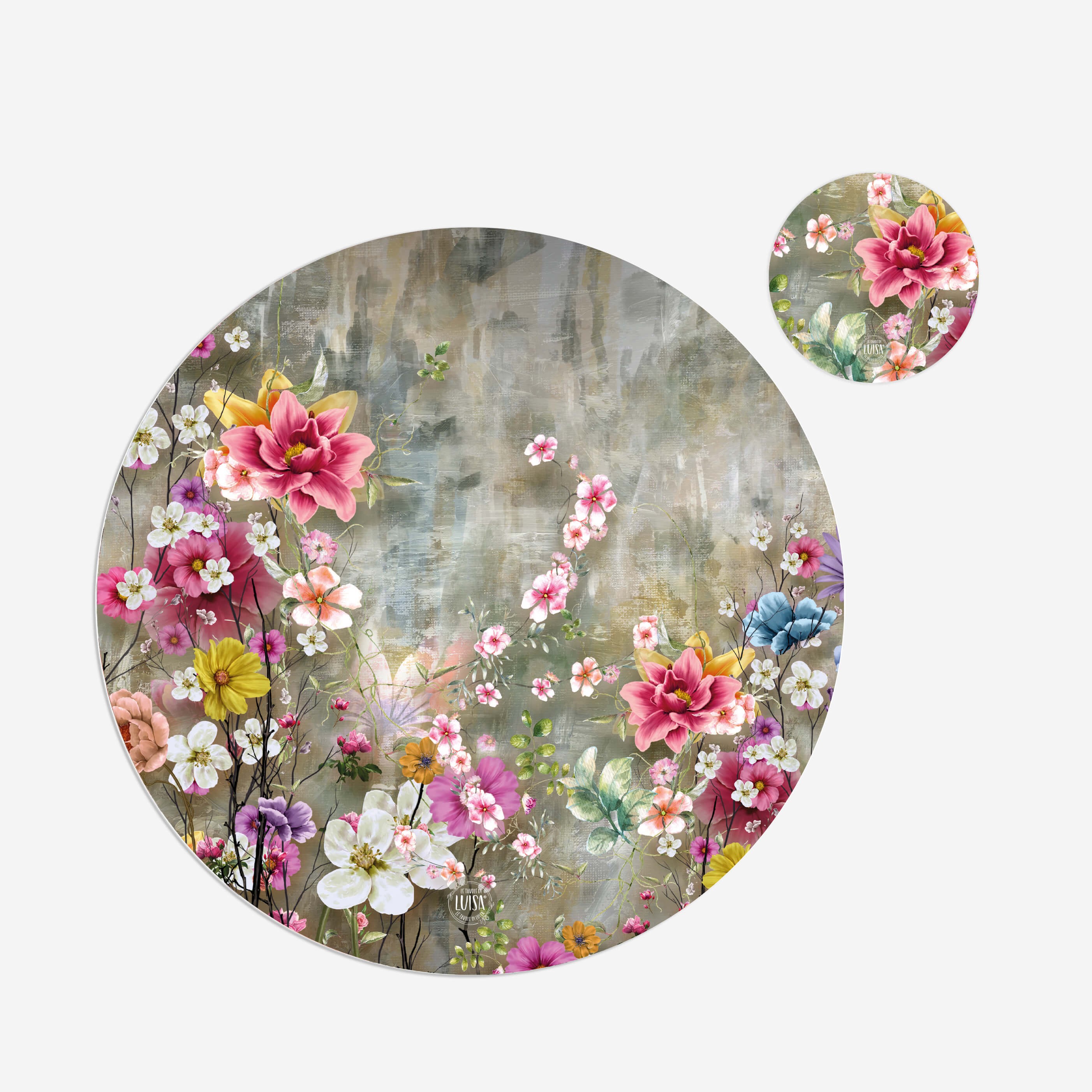 In ogni dettaglio, questo kit di sottopiatti e sottobicchieri sembra rubato a un quadro impressionista in piena fioritura. Il set “Giardino Fiorito” è un omaggio alla bellezza generosa della natura, in una versione intensa e vibrante. Petali colorati in mille sfumature: dal rosa al lilla, dal giallo al blu, si intrecciano su uno sfondo materico, dipinto con trame profonde e suggestive.
