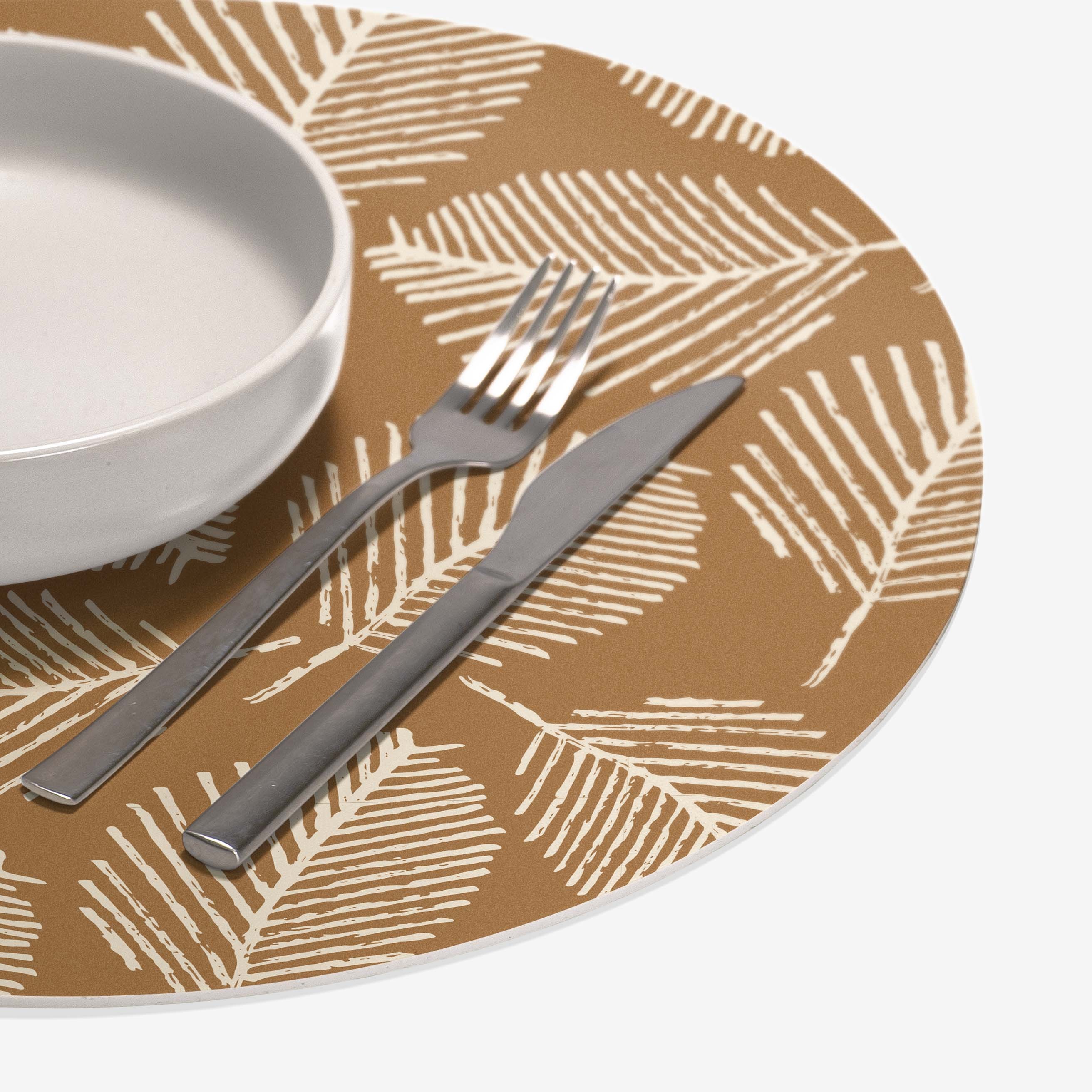 Porta l'atmosfera calda e raffinata dell'autunno in tavola con i sottopiatti "Eleganza d’ottobre". Questi eleganti set, con foglie stilizzate in tonalità color crema su uno sfondo terra, catturano l'essenza di questa stagione unica.