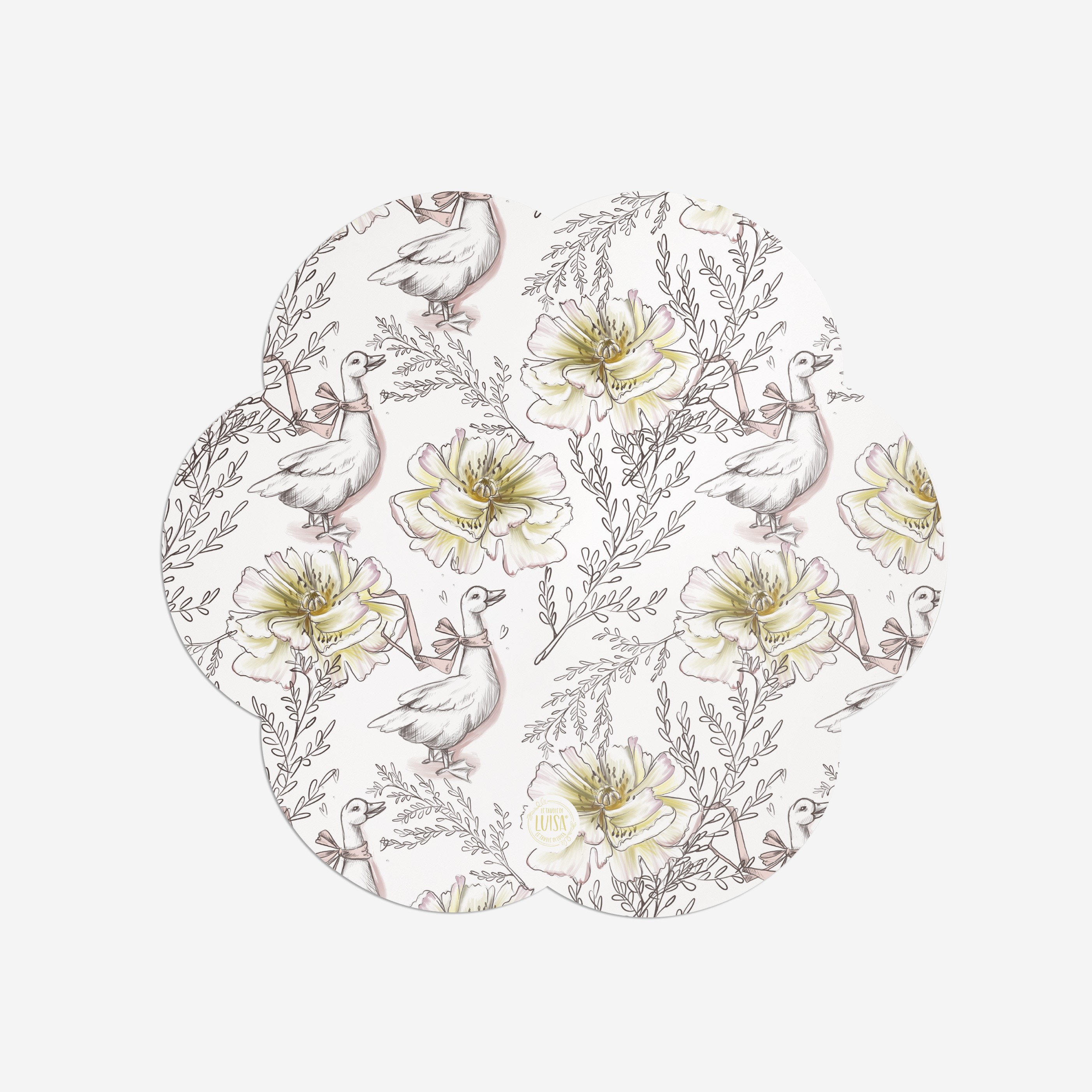 Sottopiatti “Oche tra i fiori”, Collezione Fiori - Le Tavole di Luisa