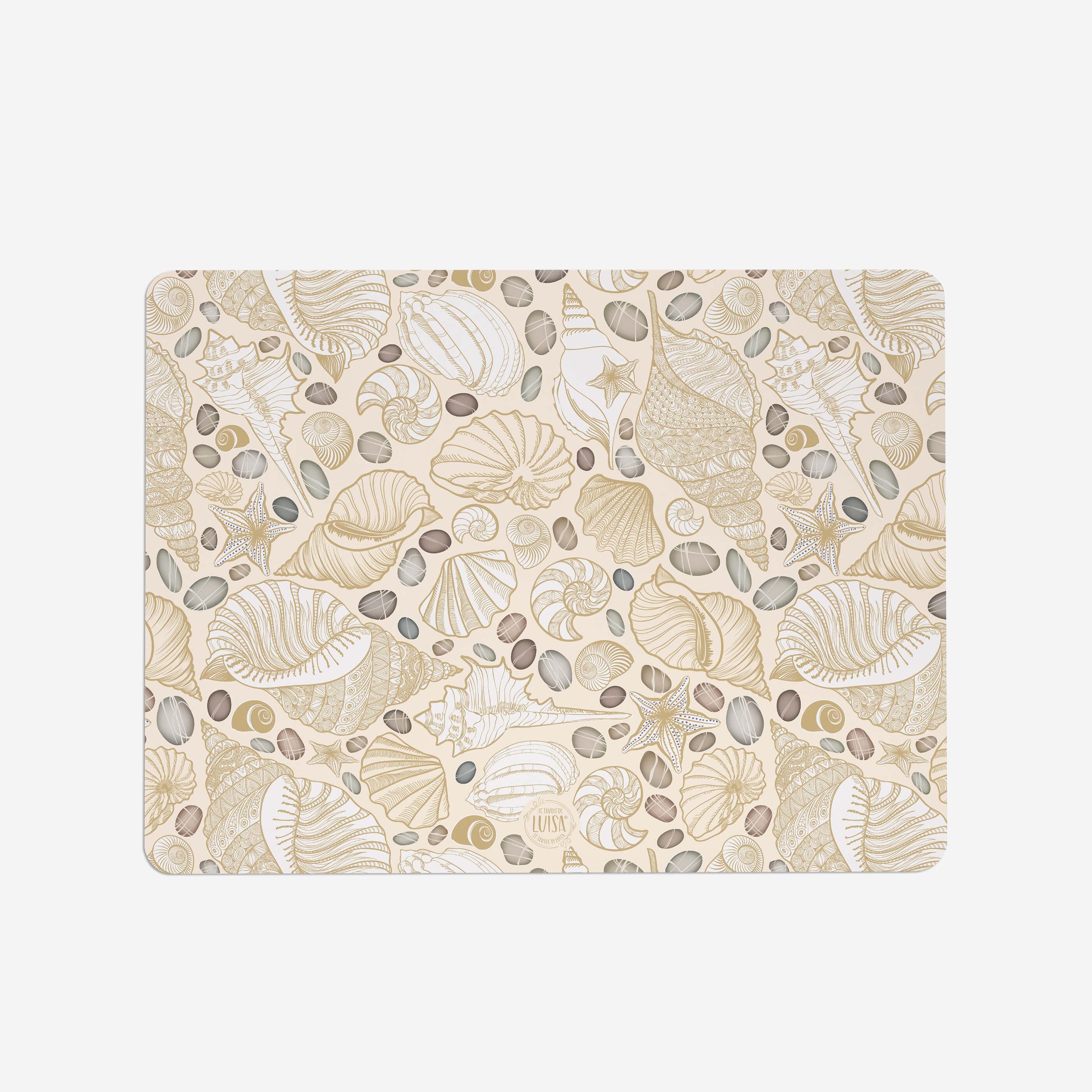 Immergiti nell'atmosfera rilassante del mare con i nostri sottopiatti "Eleganza Marina Soft". Questo set esclusivo, decorato con delicate conchiglie beige su un morbido sfondo color panna, è pensato per portare un tocco di serenità e stile alle tue tavole.