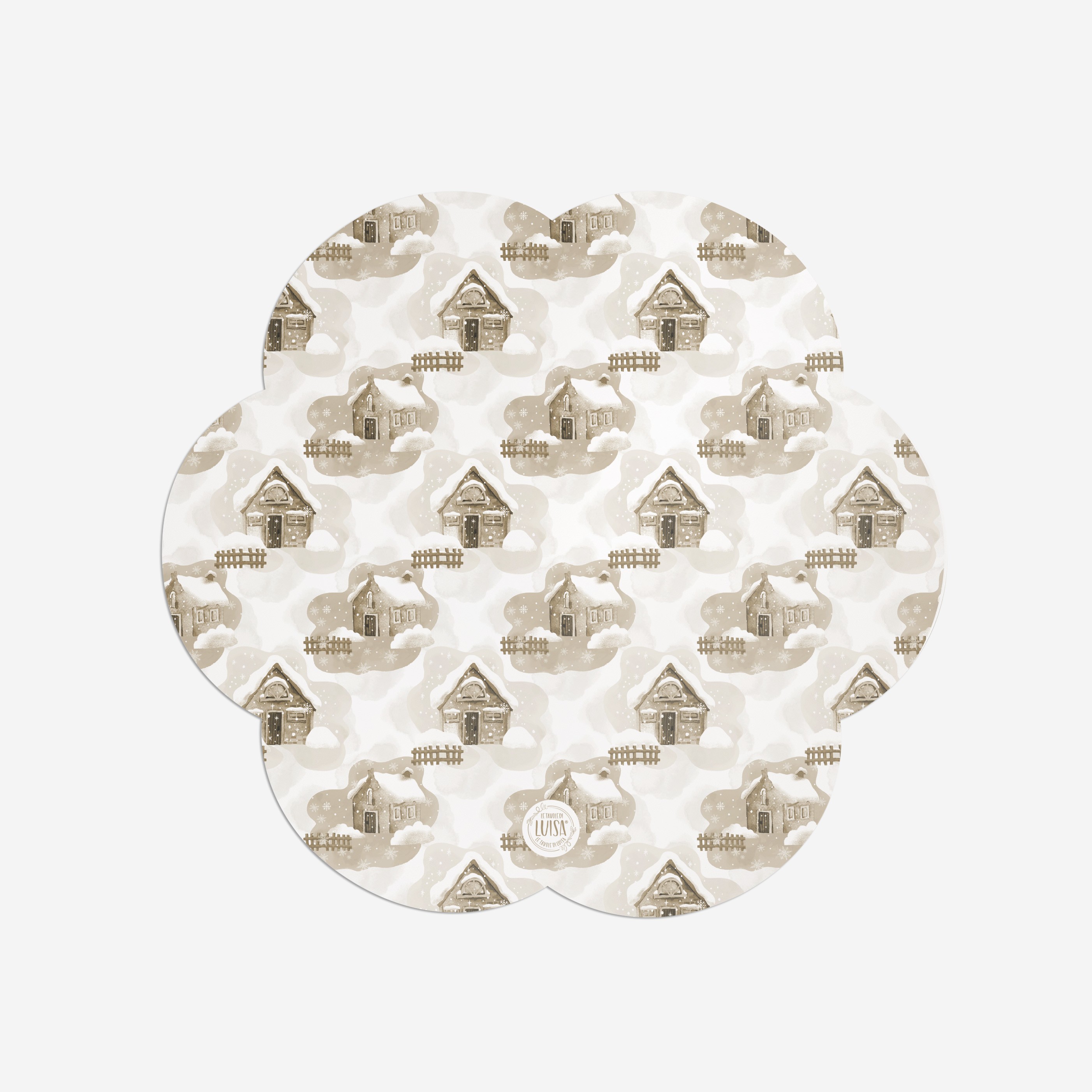 Lasciati avvolgere dall'atmosfera invernale con i sottopiatti "Casette innevate". Rendi ogni pasto un'esperienza straordinaria, creando un'atmosfera alpina unica sulla tua tavola con questo esclusivo set di sottopiatti.