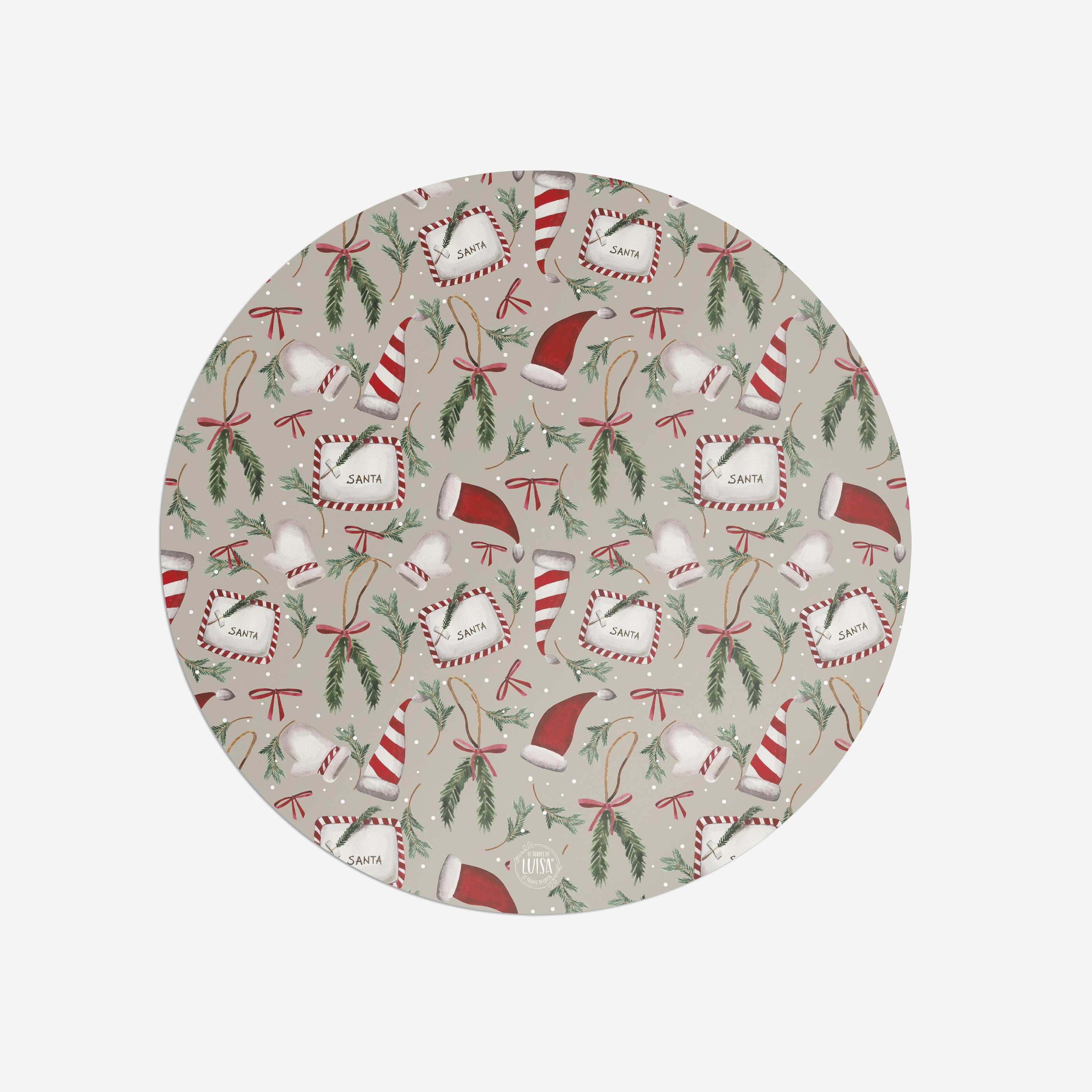 Celebra il Natale con il calore delle festività direttamente sulla tua tavola grazie a questi sottopiatti in PVC semirigido. Ogni sottopiatto è decorato con un incantevole motivo natalizio che richiama Babbo Natale: il suo iconico cappello rosso, i guanti, tante letterine per Santa Claus e rami di agrifoglio su uno sfondo chiaro. Questo stile artistico cattura la magia del periodo natalizio e aggiunge un tocco di festa unico alle tue cene conviviali.