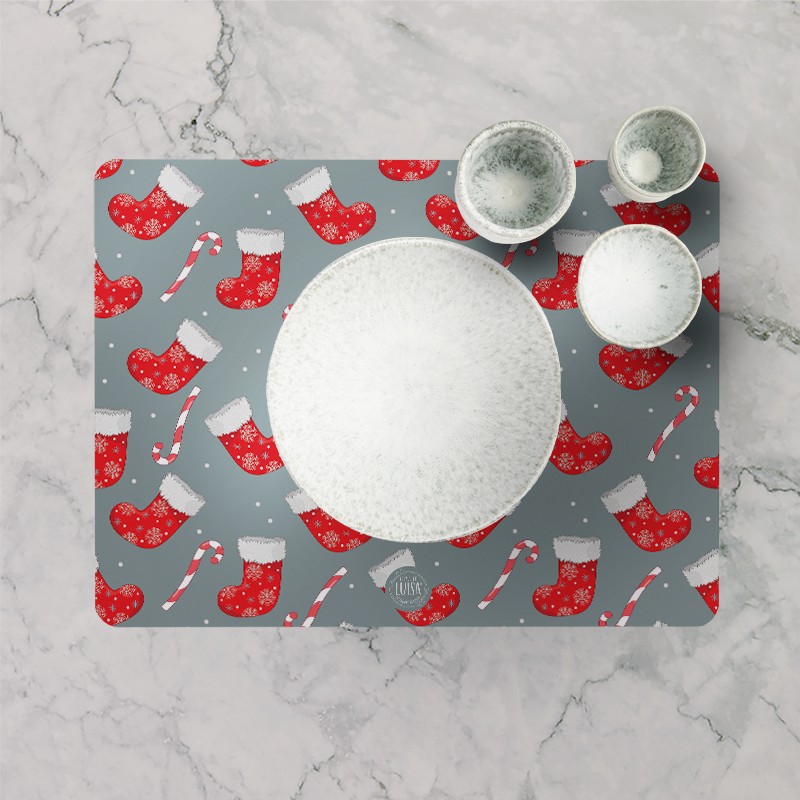 Il calore del Natale si diffonde in ogni angolo della tua tavola grazie a queste tovagliette incantevoli. Ogni calza e bastoncino di zucchero racconta la storia di generosità e dolcezza, mentre l'atmosfera notturna e festosa crea un'esperienza unica e magica.
