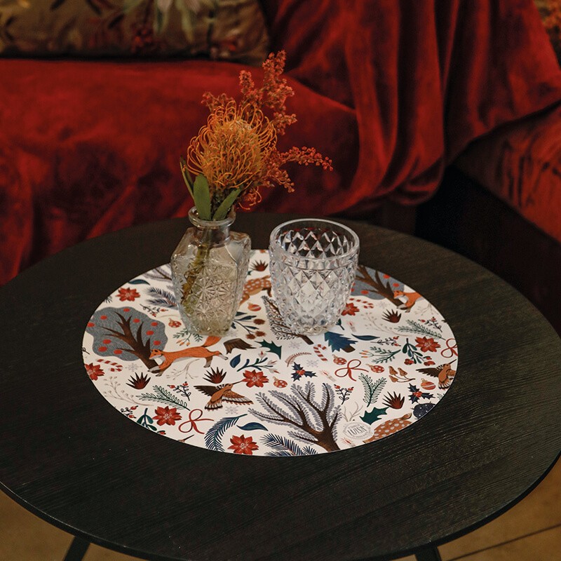 Oltre alla loro estetica vivace, queste tovagliette sono resistenti e facili da pulire, garantendo che la tua tavola sia pronta per accogliere famiglia e amici senza stress. Che tu stia organizzando una cena formale o un brunch natalizio informale, "Bosco in Festa" aggiunge un tocco di allegria e versatilità alla tua tavola, creando un ambiente festoso e indimenticabile.