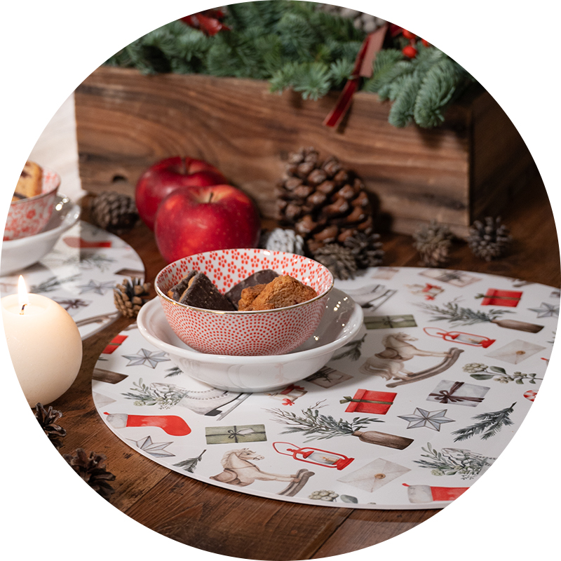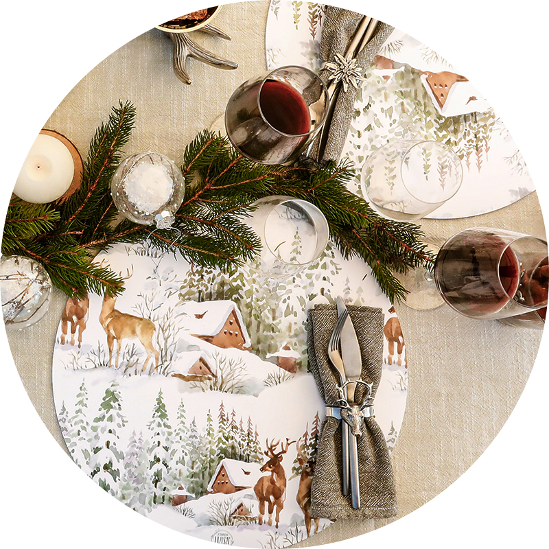 Con i nostri sottopiatti invernali, ogni tavola si veste di eleganza, calore e atmosfera. Perfetti per cene in famiglia, pranzi delle feste o momenti speciali con gli amici, uniscono praticità e stile con decorazioni ispirate alla magia dell’inverno e ai suoi colori più avvolgenti.